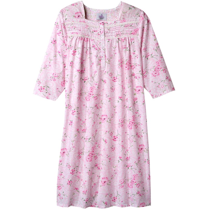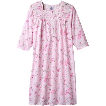 Wunderschönes Nachthemd aus Baumwolle und Polyester. Vorderteil mit Einsatz und vier funktionellen Knöpfen.