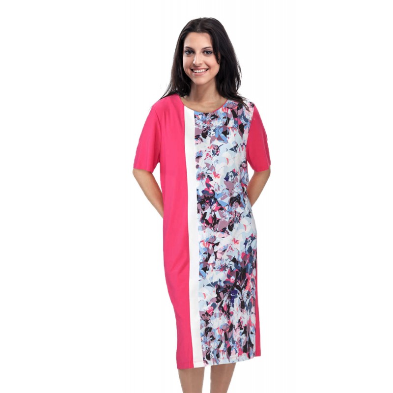 Parfait pour l’été! Joli robe à manches courtes à couleurs joyeuses, tissu souple et une superbe tombée.