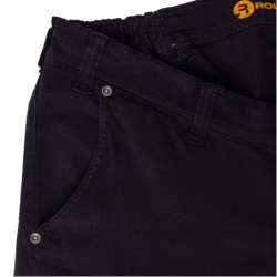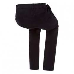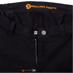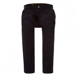 À l'arrière, le pantalon pour fauteuil roulant est coupé 10 cm plus haut afin de garantir un confort et une protection suffisants au niveau des zones sensibles des reins et du dos. Le pantalon est doté d'une fermeture éclair extra longue jusqu'à la couture de l'entrejambe avec une languette zippée. . Il possède deux bandes élastiques au niveau de la taille incorporés dans la ceinture douce et souple pour améliorer l'ajustement.