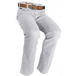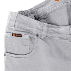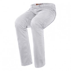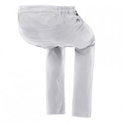 Les jeans pour fauteuils roulants sont coupés 10 cm plus haut au niveau de la taille arrière, assurant ainsi un confort et une protection suffisante dans la zone sensible des reins et du dos. Le pantalon est doté d'une fermeture éclair extra longue jusqu'à la couture de l'entrejambe avec une languette zippée. Les jambes du pantalon sont parfaitement adaptées à la position assise grâce à la forme des jambes plus longues et droites. Il possède deux bandes elastiques au niveau de la taille incorporés dans la ceinture douce et souple pour améliorer l'ajustement. Pour éviter les points de pression, le coutures intérieures on été cousues à plat sur toute la zone des fesses et l'utilisation de fausses poches arrière assure un look authentique.