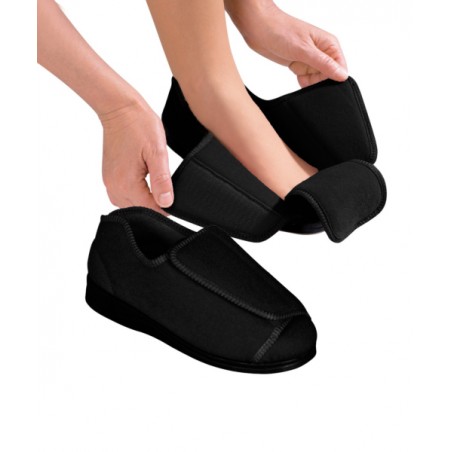 Pantoufles de grande largeur pour le confort des pieds, même les plus enflés. Les larges ouvertures les rendent facile à enfiler même pour les personnes arthritiques ou à dextérité réduite. Le système de fermeture Velcro® permet d’ajuster les pantoufles aux pieds selon le besoin. Les semelles antidérapantes offrent une meilleure adhérence et une bonne stabilité.